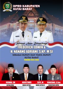 DPRD Kutai Barat mengucapkan Selamat atas Dilantiknya Frederick Edwin dan H. Nanang Adriani sebagai Bupati dan Wakil Bupati Kutai Barat periode 2025-2030.